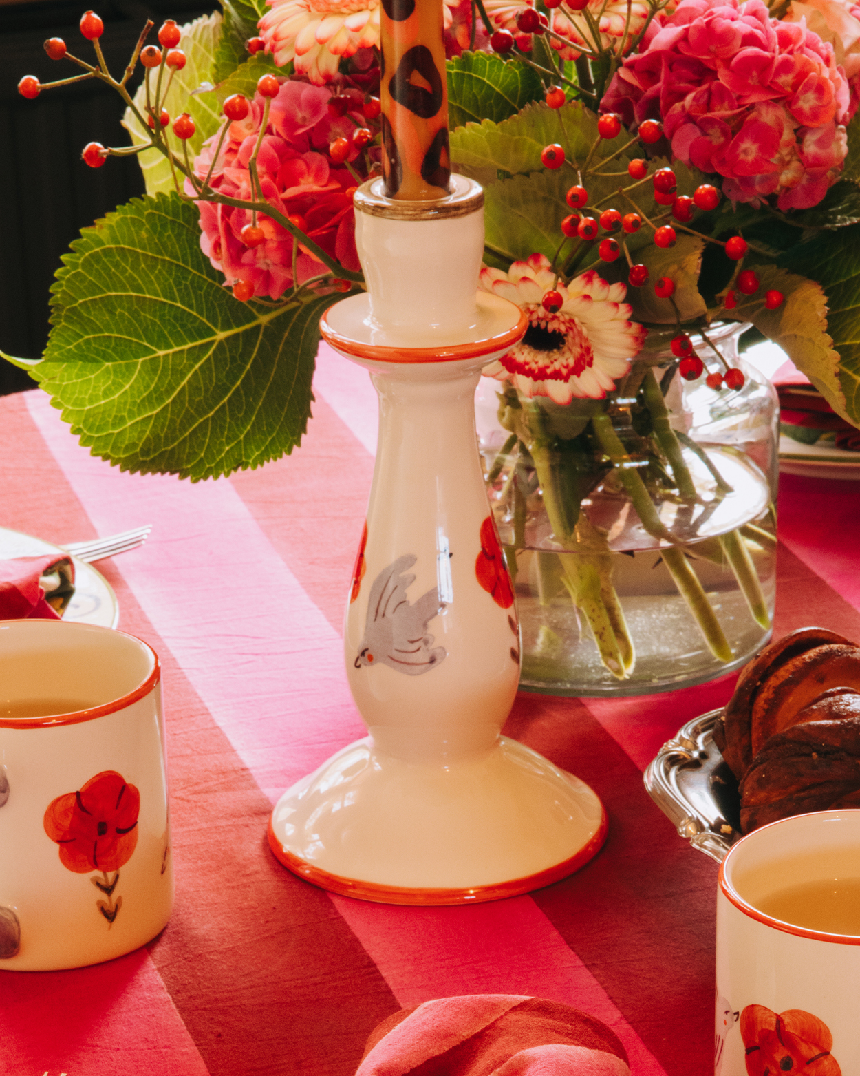 Creëer warmte in je interieur met onze handgeschilderde keramiek kaarsenkandelaar Bloom and Bird.