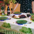 Zomerse avonden vragen om een vrolijke tafel. Lilac en Bloom is daar perfect voor. Dit handgemaakte tafelkleed is bedrukt met de traditionele blockprint techniek uit India en brengt zachte lila en groene tinten via bloemen op tafel. Lekker fris voor geweldige zomerse avonden. Heel leuk te combineren met ons parelbestek!