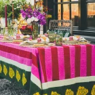 Dit unieke tafelkleed is 100% handgemaakt met de eeuwenoude blockprint-techniek uit India. Geniet van de warme kleuren en rijke patronen die elk diner een feest maken. Combineer met onze handgemaakte servetten voor een volledige set. Laat de tafel maar stralen!