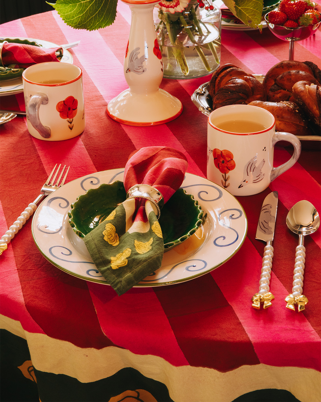 Geef kleur aan je tafel met het Stripes & Roses tafelkleed! Perfect voor de zonnige dagen die eraan komen. Of je nu een brunch of diner organiseert, dit tafelkleed brengt instant sfeer, laat je tafel stralen en geeft elk etentje net dat beetje extra.