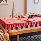 Maak je tafel helemaal af met Dusty Rose and Stars. Dit handgemaakte tafelkleed in warme rozetinten valt op door de opvallende prints en de bijzondere zijkanten met strepen en speelse details. Het geeft je tafel direct karakter en een gezellige, stijlvolle uitstraling.